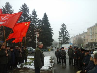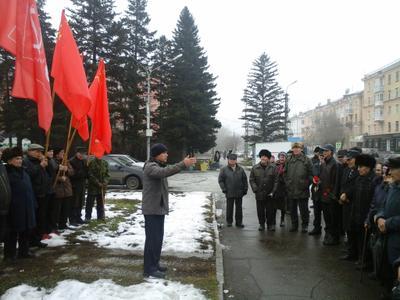 - В полицию поступил якобы "сигнал" о проходящем на площади у памятника Ленина митинге. У Владимира Павловича Белкина потребовали объяснений об "организации митинга". Коммунисты и наши сторонники и так знают, что у нас ежегодно по традиции проходит 7 ноября возложение цветов к памятнику вождю Великой Октябрьской социалистической революции и это не требует какой-то "организации" - через предварительное оповещение или приглашение.