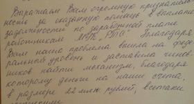 «Уважаемый Геннадий Андреевич! Выражаем Вам глубокую признательность за оказанную помощь в IMG-20161219-WA0001 выплате задолженности по заработной плате работникам МУП "РТС". Благодаря Вам наша проблема вышла на федеральный уровень и заставила чиновников найти механизм, благодаря которому деньги на наши счета в размере 22 млн руб. все-таки поступили. Теперь наши семьи смогут встретить Новый год достойно!