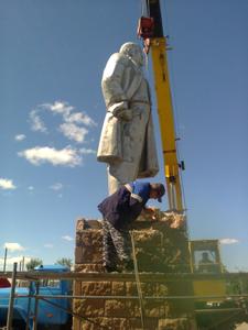 29 мая сего года на площади перед РДК наблюдалась картина, которую мы целый год зрели в современной бандеровской Украине. У памятника В.И. Ленину кран с накинутым тросом на скульптуру.