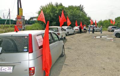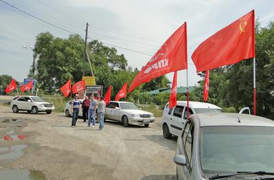 Маршрут благовещенских активистов КПРФ 16 августа пролегал по отдаленным районам областного центра. Колонна автомобилей, украшенных флагами и плакатами: «Ударим автопробегом по бездорожью и разгильдяйству», «Есть налоги! Где дороги?» выдвинулась от здания городского комитета КПРФ по адресу Шимановского,5. Первым пунктом назначения стало село Садовое, затем красная колонна добралась Моховой Пади, завершился автопробег в самом отдаленном районе Благовещенска – селе Белогорье.