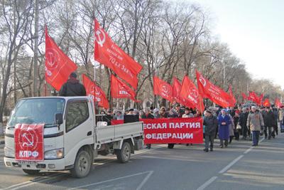 Амурская область встретила 98 годовщину Великой Октябрьской социалистической революции массовыми шествиями и митингами
