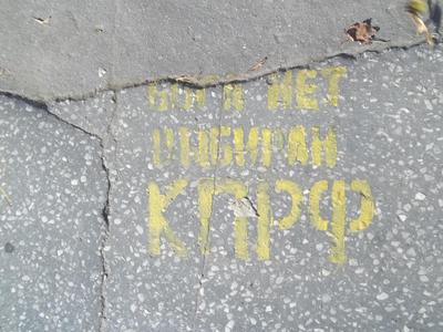 В ночь с 25 на 26 августа по городу Владимиру на асфальте пешеходных дорожек желтой краской были нанесены провокационные надписи следующего содержания: «Бога нет. Выбирай КПРФ».