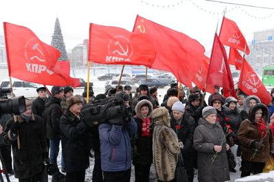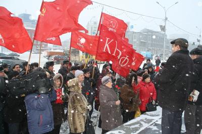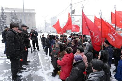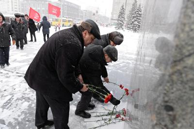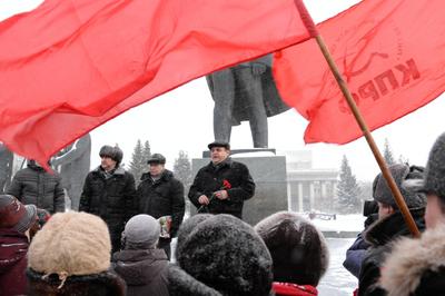 Сегодня, в день 91-й годовщины со дня смерти Владимира Ильича Ленина, в самом центре Новосибирска прошло возложение цветов к памятнику вождю мирового пролетариата, организованное областным комитетом КПРФ. Несмотря на ненастную погоду, более 50 человек собралось почтить память Владимира Ильича.