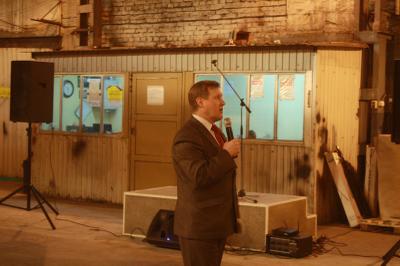 Кандидат в мэры Новосибирска, депутат Госдумы Анатолий Локоть встретился с коллективом Новосибирского завода дорожных машин. На предприятии базируется производство гидравлических молотов для строительной отрасли, но наиболее известна продукция завода под торговой маркой «Термофор». Встреча с депутатом Госдумы прошла прямо в цехе и собрала несколько сотен человек.
