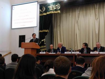 Руководитель фракции КПРФ в Мосгордуме Андрей Клычков принял участие в форуме «Солидарность молодежи против терроризма и информационных войн», организованном на площадке Московского государственного лингвистического университета.