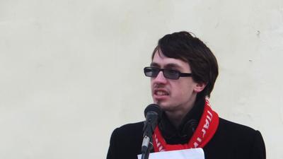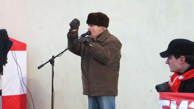 От городского комитета КПРФ выступил ветеран труда, секретарь горкома по идеологии Виктор Шах. Резолюцию митинга огласил Никита Резаков: