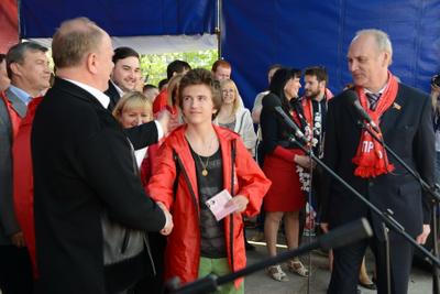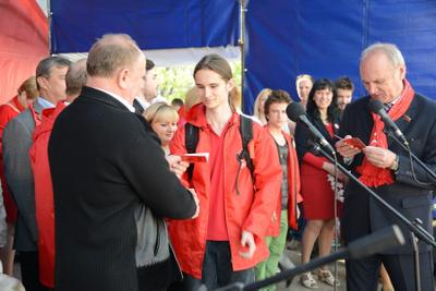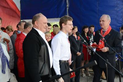 После выступления Г.А. Зюганова состоялось торжественное вручение партийных и комсомольских билетов молодым коммунистам и комсомольцам. В их числе - «железная девушка», чемпионка мира по жиму штанги лежа, комсомолка Марьяна Наумова. Она поблагодарила КПРФ за поддержку, призвала участников митинга заниматься физкультурой и спортом и пожелала всем крепкого здоровья.