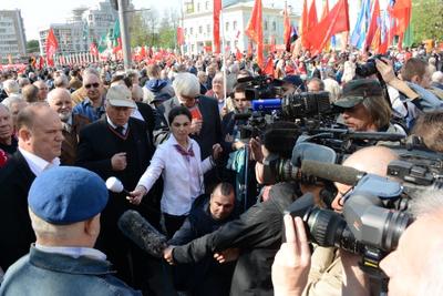 «Прошел год со времени прошлого Первомая, - отметил далее лидер КПРФ, - и в мире многое изменилось. Главным орудием, которым защищается простой человек от насилия олигархии и капитала, является солидарность. Благодаря нашей солидарности и солидарности государственно-патриотических сил, наши братья в Крыму и Севастополе показали образцы демократии. Они на всенародном референдуме проявили общую единую волю, чтобы воссоединиться с матерью-Родиной, Россией. Давайте поблагодарим севастопольцев и крымчан за мужество и солидарность и поздравим с тем, что они сегодня вместе с нами отмечают Первомай! Ура Севастополю и Крыму!»