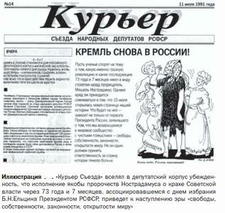 Победа Б.Н.Ельцина на президентских выборах в РСФСР 12 июня 1991 года в корне изменила политическую ситуацию и в СССР, и в Российской Федерации. В этот период внешне царила эйфория как в российском депутатском корпусе, так и в администрации российского президента. Депутатская многотиражка «Курьер Съезда» даже пропагандировала предсказания Мишеля Нострадамуса, якобы предвидевшего падение Советской власти через 73 года и 7 месяцев, аккурат ко дню избрания Б.Н.Ельцина Президентом РСФСР. Победителям казалось, что, наконец наступила эра «свободы, собственности, законности, открытости миру»