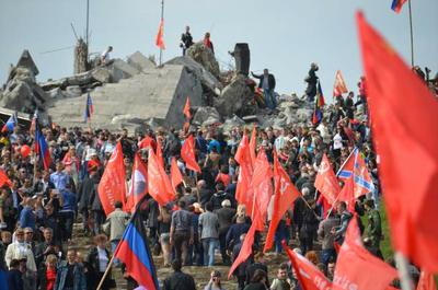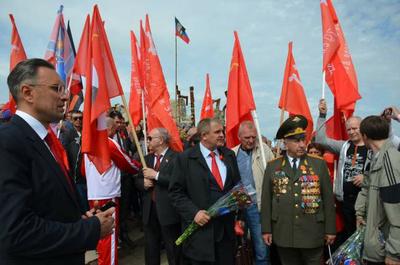 8 мая большая группа донских коммунистов провела автопробег и приняла участие в торжествах в преддверии празднования 70-летия Великой Победы на кургане Саур-могила в Донецкой народной республике.