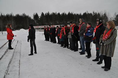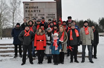 Маршрут автопробега продолжился до мемориального комплекса «Невский пятачок», расположенного в Кировском районе Ленинградской области. Там, где когда-то располагался плацдарм Невский пятачок, ребята провели траурный митинг, почтив память погибших защитников Ленинграда минутой молчания и вспомнив одну из самых героических и трагических страниц отечественной военной истории. Митинг открыла первый секретарь Санкт-Петербургского горкома, секретарь ЦК ЛКСМ РФ Анна Клочкова. Перед ребятами выступили второй секретарь Санкт-Петербургского горкома КПРФ О.А. Ходунова, руководитель фракции КПРФ в Законодательном Собрании Санкт-Петербурга В.Я. Дмитриев и второй секретарь горкома комсомола Роман Кононенко, рассказавшие участникам митинга о ходе боев за Невский пятачок. Именно на этом участке побережья Невы в 1941-1943 годах войска Ленинградского фронта около 400 дней пытались прорвать блокаду Ленинграда. Склонив красные знамена, комсомольцы возложили цветы и венок от городского комитета ЛКСМ к мемориалу «Невский пятачок», входящему в легендарный «Зеленый пояс Славы».