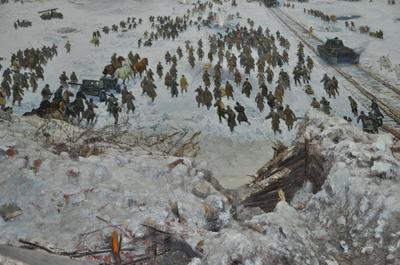 Диорама воспроизводит самые значительные события 7 дней ожесточенных боев (с 12 по 18 января 1943 г.) операции «Искра», ставшей переломным моментом Битвы за Ленинград. Художественно-документальное полотно диорамы воскрешает боевые действия с 12 по 18 января 1943 г. за прорыв немецко-фашистских укреплений, возведенных на Шлиссельбургско-Синявинском выступе за 16 месяцев осады Ленинграда. Комсомольцы с интересом выслушали экскурсию о ходе операции «Искра» и побеседовали с сотрудниками музея о нынешнем состоянии мемориального комплекса.