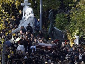 На похороны пришли сотни людей, сообщает «Комсомольская правда». Гроб пронесли мимо могилы Александра Абдулова (памятник ему, белый крест, - на заднем фоне).