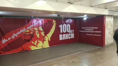 Помимо этого, в честь 100-летия ВЛКСМ, подземный пешеходный переход, ведущий к зданию мэрии, украсили красочными комсомольскими плакатами.