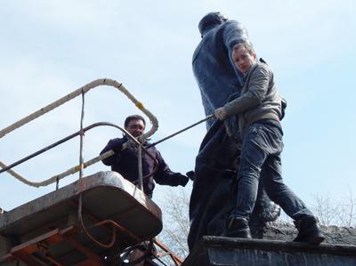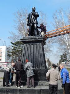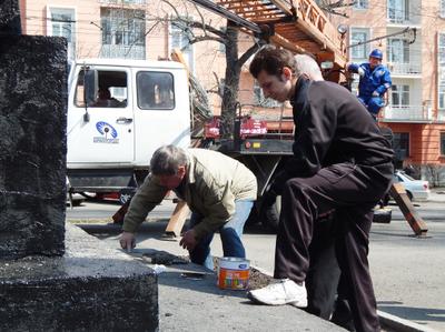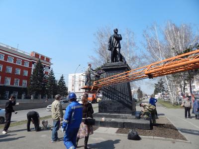 - Предварительно мы провели осмотр памятника Ленину. В целом он находился в хорошем состоянии, но требовался косметический ремонт. По нашей просьбе, для проведения ремонтных работ, администрация города Барнаула предоставила автомобильную вышку.