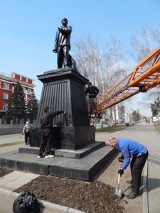 18 апреля в ходе общегородского субботника депутаты- коммунисты Барнаульской городской Думы: Андрей Сартаков и Анатолий Барсуков, партийные активисты четырех райкомов: Ленинского, Октябрьского, Центрального и Железнодорожного, а так же руководитель барнаульских комсомольцев Антон Арцибашев осуществили текущий ремонт старейшего памятника Ленину в Барнауле, который расположен напротив Дома правосудия.