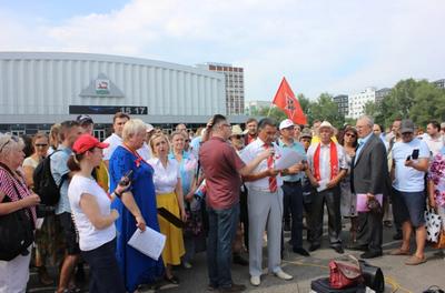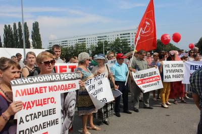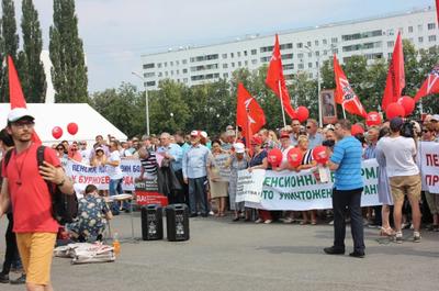 На площади у Дворца спорта состоялся митинг против повешения пенсионный реформы, который организовала КПРФ. На площадь пришло около 1000 человек, это намного больше чем приход на претесные митинги в Уфе.