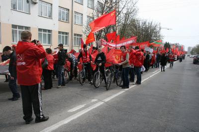 День начался с комсомольского велопробега, участники которого с развивающимися знаменами ЛКСМ РФ проехали, возложив цветы, ко всем памятникам В.И. Ленину в городе, остановились у здания городской администрации и под лозунгом "Ленин! Партия! Комсомол!" плавно влились в шествующую колонну. "Ленин с нами!", "Наша сила в правде!", "Савченко и Боженова в отставку!" — гласили надписи на транспарантах. Пока участники митинга собирались возле администрации г.Белгорода, протестующие высказали своё отношение к действиям городского совета депутатов и белгородской мэрии: каждого депутата, проголосовавшего за перенос памятника В.И. Ленину с площади Революции, они поименно заклеймили позором, а потом продолжили движение к музею-диораме "Огненная дуга", напротив которого начался митинг.