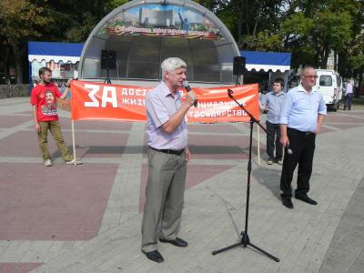 Открыл митинг первый секретарь Белгородского обкома КПРФ, депутат областной Думы В.А. Шевляков. Он сказал, что государство использовало последний кризис, чтобы снять с себя ответственность за жизнеобеспечение народа. На что угодно у властей находятся деньги – только не на поддержку людей, которые оказались на грани выживания. На конкретных примерах Валерий Алексеевич показал, что власти, и федеральные, и региональные, снова и снова принимают решения, которые ещё более затрудняют выживание недостаточно обеспеченных людей.