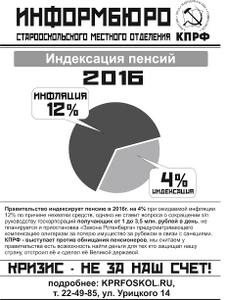 В Старом Осколе коммунисты провели пикеты против обнищания пенсионеров. Одновременно в двух местах города коммунисты вышли с плакатами, на которых было написано: «Индексация пенсий – не ниже инфляции!», «Кризис - не за наш счет!», «Нищета народа – позор для страны!».