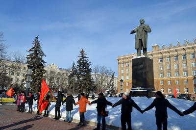 27 января комсомольцы, коммунисты и левофронтисты Белгорода и области вышли к Владимиру Ильичу. Окружив его и крепко взявшись за руки, они создали неразрывное кольцо, тем самым показав местным властям, что не собираются просто так отдавать им памятник Вождю мирового пролетариата, переписывать историю и пилить бюджет области.