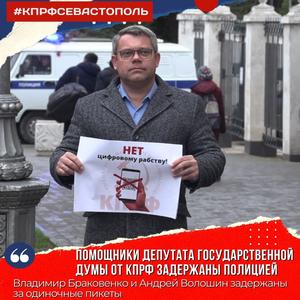 Второй секретарь Севастопольского горкома КПРФ Владимир Браковенко и первый секретарь Гагаринского РК КПРФ Андрей Волошин были задержаны полицией.