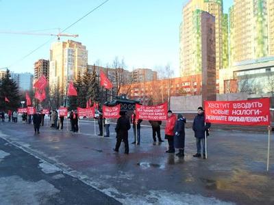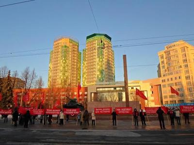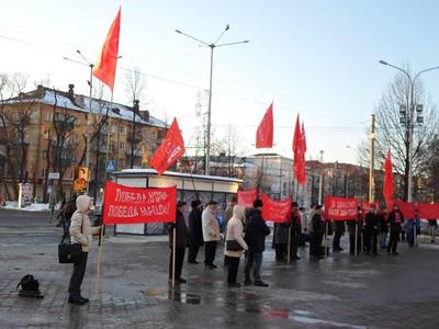Небольшой митинг завершился принятием Резолюции и продолжился пикетом под алыми флагами и красноречивыми транспарантами, под звуки песен и маршей в честь Дня рождения великой Советской Армии!