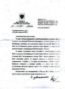 Учитывая важность этого вопроса, О.Н. Алимова обратилась с депутатским запросом к министру иностранных дел РФ С.В. Лаврову. И вот буквально вчера от министра пришел обнадеживающий ответ.