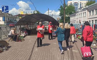 На днях прошёл очередной агитационный рейд. На этот раз комсомольцы и коммунисты посетили центр Брянска – Советский район. Они прошлись по рынкам района, торговым центрам, у проходных оставшихся ещё на плаву предприятий, а также заглянули на Площадь Партизан и Курган Бессмертия, раздавая спецвыпуск газеты «Брянская правда в Советском районе».