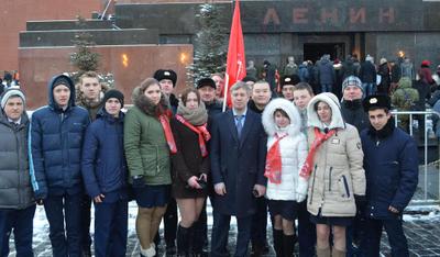 Вначале курсанты авиационного колледжа приняли участие в мероприятии на Красной площади, где коммунисты в День памяти В.И. Ленина возложили цветы к Мавзолею вождю мирового пролетариата.