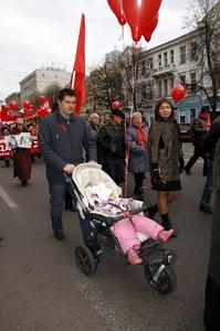 Но главным фактором, способствовавшим пополнению праздничных и одновременно протестных колонн, стало недовольство проводимой в стране праволиберальной политикой и в то же время тяга людей, и не только старшего поколения, к советским традициям, символизирующим достойную жизнь, наполненную честным трудом и уверенностью в завтрашнем дне.