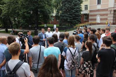 После возложения Ю. Афонин ответил на вопросы местных журналистов.