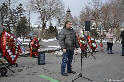 - У нас практически нет семьи, где не погибли бы наши родные, - сказал в своем выступлении председатель Астраханского отделения общественной организации «Дети войны» В.Д. Усов. - Что же они защищали? Они защищали Родину. А Родина состоит из трех частей. Первое – это родня, друзья, близкие… Второе – это земля, которая принадлежит русскому народу, которая не подлежит продаже и которую не имели права продавать без народного референдума. И третье – защищали советскую власть. И защищая всё это, люди шли на смерть. И победили! Спасибо им за это и низкий поклон. Без этих людей, которые погибли и которые победили, нас бы с вами не было. Но хотелось бы, чтобы это поняли и те, кто сегодня у власти. Поняли бы, что их тоже бы не было. И поэтому они в большом долгу и перед теми, кто погиб, и перед теми, кто еще жив.