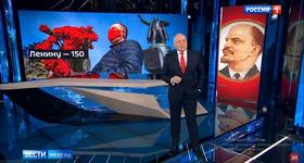 Разумеется, буржуазное государство также не могло оставить юбилей Ленина без внимания. Но сделали они это по-своему: один из главных пропагандистов режима Дмитрий Киселев в своей передаче "Вести недели" разразился гневной тирадой в адрес Ленина. Говоря о памятниках Владимиру Ильичу, Киселев заявил, что страна ими перенасыщена, и предложил разрушить "ленинскую монополию". Согласно идее Киселева, следует в ближайшее время снести все памятники Ленину, вероятнее всего, по примеру Украины, за исключением нескольких десятков скульптур в крупных городах, а на их месте установить монументы другим историческим личностям - в частности, адмиралу Колчаку и атаману Краснову. И это на фоне нынешней патриотической риторики государства и в преддверии 75-й годовщины Победы советского народа в Великой Отечественной войне.