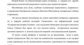 Острой болью эта невосполнимая утрата отозвалась в сердцах его друзей, соратников, почитателей уникального таланта, всех патриотов страны.