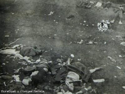 Житель же Липягов Просвирнов записал следующее: «После захвата деревни Липяги и станции расправа была ужасная. Попавших (в плен) красноармейцев не стреляли, а брали на штыки, как крестьяне берут вилами снопы… вешали за ноги на телеграфную проволоку».