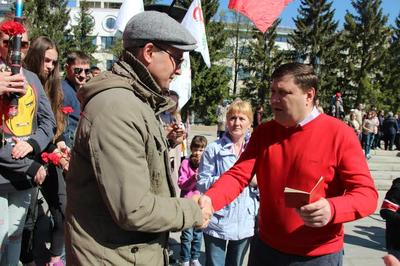 По окончании городского торжества, коммунисты провели у подножия «Вечного огня» маёвку, на которой первый секретарь челябинского обкома КПРФ Игорь Егоров вручил партийный билет представителю центрального районного отделения КПРФ города Челябинска.