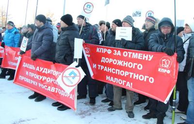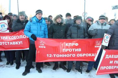 На пикет, несмотря на 20-ти градусный мороз, вышло более трёхсот дальнобойщиков с лозунгами «Против 12-тонного оброка!», «За отмену дорожного и транспортного налога!», «Даёшь аудиторскую и прокурорскую проверку Росавтодора!», «Заплатит дальнобойщик, а подорожает всё!», «Министра Соколова в отставку!», «Ротенберг и Платон – грабители на дорогах России!», «Платон – карман Ротенберга».