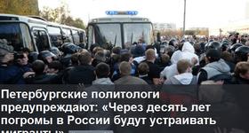 - У нас будут гетто, как в Европе, - прогнозирует политолог. - Второе поколение мигрантов растет в духе унижений и социального неравенства. Скоро они не смогут с этим мириться, и тогда мы увидим новые волнения уже с другой стороны. Ведь дистанция от этнического протеста, религиозного фундаментализма до экстремизма достаточно коротка. Эта опасность вполне реальна».