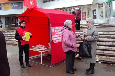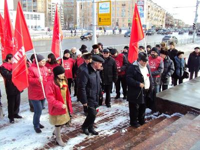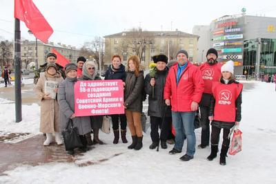 День Советской Армии и Военно-Морского Флота рязанские коммунисты отметили торжественным возложением цветов к монументу Победы и проведением красных пикетов в многолюдных местах города.