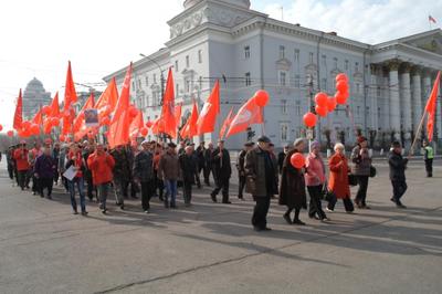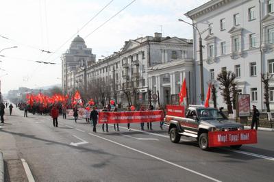 По традиции красная колонна прошла с флагами, шарами и транспарантами от Театральной до центральной площади Читы, где и состоялся митинг.