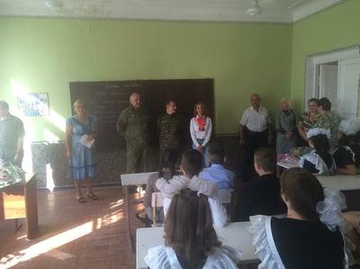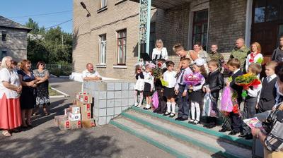 Первого сентября товарищи опять поехали на линию соприкосновения для того, чтобы поздравить детей, вынужденных начинать новый учебный год под дулами орудий украинских нацистов. Дети с радостью поднимались по ступеням крыльца родной школы. Учителя понимают необходимость обеспечить хорошее образование без украинской лживой пропаганды. Только требуются новые ученики истории, географии, литературы, в которых бы объективно излагались факты о нашей Родине, а не так, как это было принято на олигархической, нацистской Украине.