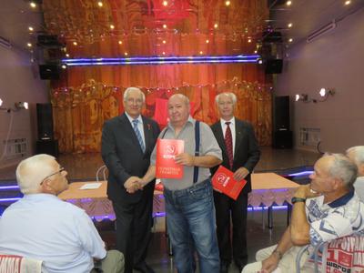 И партбилеты и почётные грамоты ЦК КПРФ отдельным парт активистам под аплодисменты аудитории торжественно вручались Петром Романовым и первым секретарём районного отделения КПРФ Николаем Кочетковым.