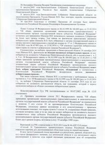 Объясняется это тем, что в 2014 году Валерий Шанцев, фактически, был избран губернатором на третий срок. Однако, согласно федеральному закону, а также Уставу Нижегородской области, высшее должностное лицо субъекта РФ избирается на срок не более пяти лет и не может замещать указанную должность более двух сроков подряд.