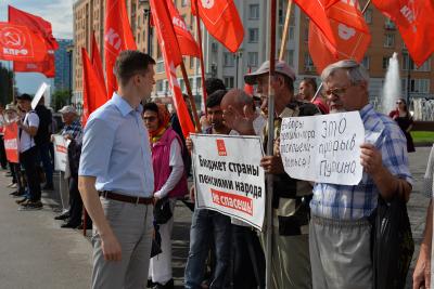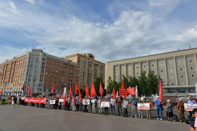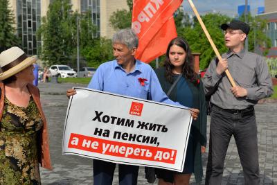 Новосибирские коммунисты организовали пикет против повышения пенсионного возраста около ГПНТБ. Они уверены, что «бюджет страны пенсиями народа не спасешь» и предлагают «просто сжечь себя после 60 лет».