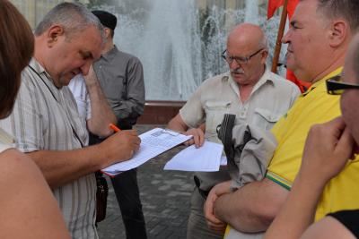 Пока идет пикет, участники активно подписывают петицию против пенсионной реформы. Они уверены, что этот законопроект, наряду с повышением НДС, — обман всего населения. Пенсионеры также активно ставят свои подписи, хотя кажется, что их эта «инновация» уже не коснется.