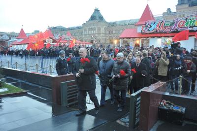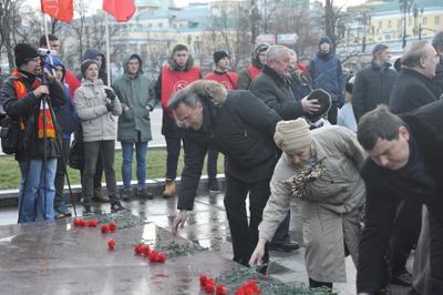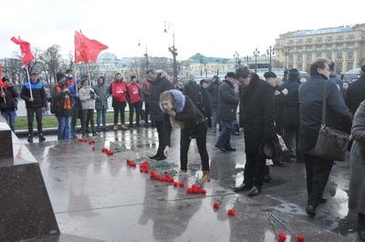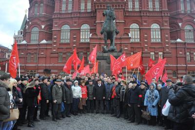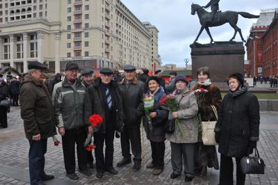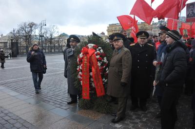 Сегодня, 21 декабря 2014 года, в день 135-лентия со Дня рождения Иосифа Виссарионовича Сталина, в 11:00 от памятника маршалу победы Жукову стартовала красная колонна, в составе которой и пожилые и молодые – все, стремились воздать дань уважения и памяти великому Вождю. Под серой пеленой туч, при погоде не по зимнему бесснежной, ярко, как всполохи пламени, выделялись цветы – гвоздики в руках идущих. Так же и сам Сталин выделяется на фоне серой массы современных нам политиков, как титан над пигмеями.