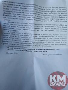 22 января депутаты Госдумы Валерий Рашкин, Денис Парфенов, Алексей Корниенко, а также депутат Мосгордумы Николай Зубрилин провели встречу со своими избирателями у посольства Японии в Москве. Цель встречи – разъяснить гражданам позицию КПРФ по вопросу возможной передачи японскому государству части российской территории: островов Шикотан и Хабомаи.