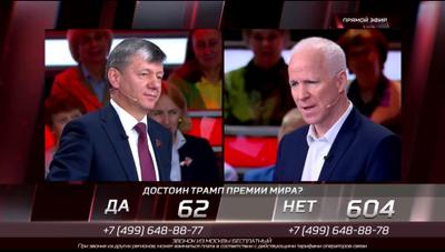 Вошёл ли президент США в историю благодаря переговорам с руководителем КНДР Ким Чен Ыном? С обсуждения этого вопроса и началась дискуссия в прямом эфире НТВ. По мнению Дмитрия Новикова, Дональд Трамп не может всерьёз рассматриваться как кандидатура, заслуживающая Нобелевской премии мира. Свою позицию зампредседателя ЦК КПРФ объяснил тем, что каждый президент США отражает определённые интересы. В случае с демократами – это интересы неолибералов, в случае с республиканцами – неоконсерваторов.