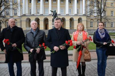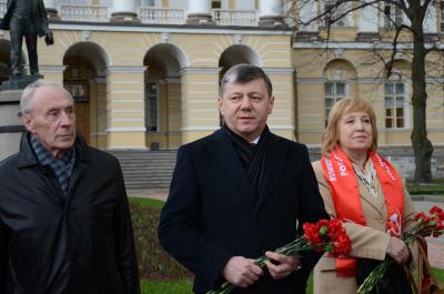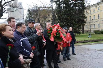 По случаю дня рождения Владимира Ильича Ленина коммунисты северной столицы проводят серию памятных мероприятий. Они начались с возложения цветов к памятнику В.И. Ленину у Смольного.